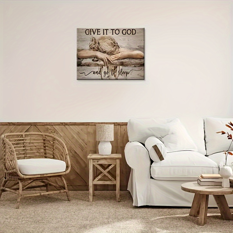 1pc Framed Painting Sleeping Girl Give It To God And Go To Sleep Canvas Posters And Prints Wall Art Pictures With Frame For Living Room & Bedroom, Home Decoration, Festival Gift For Her/Him, Ready To Hang