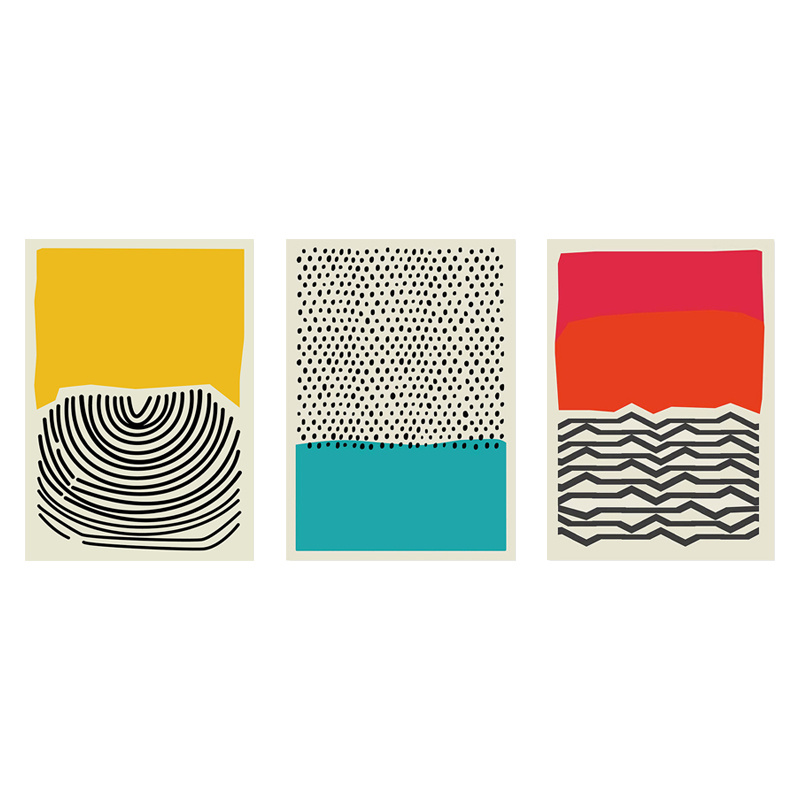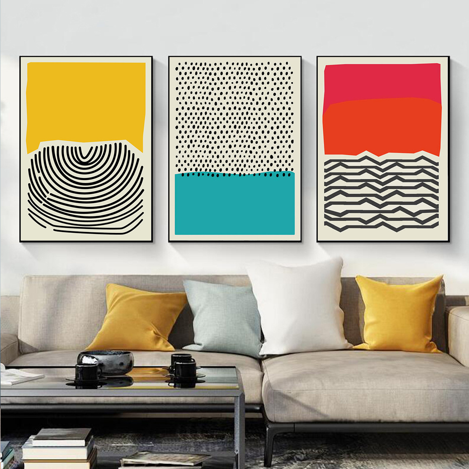 3pcs Mid Century Modern Abstract Color Blocks Wall Canvas - Eye-Catching and Stylish Wall Art for Your Home