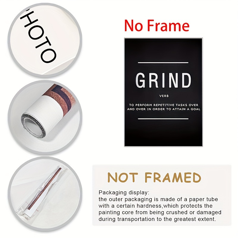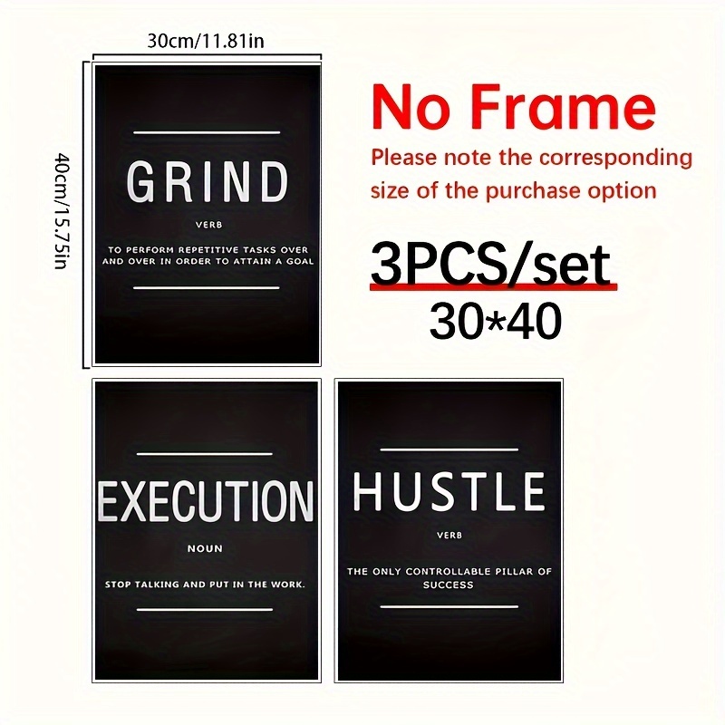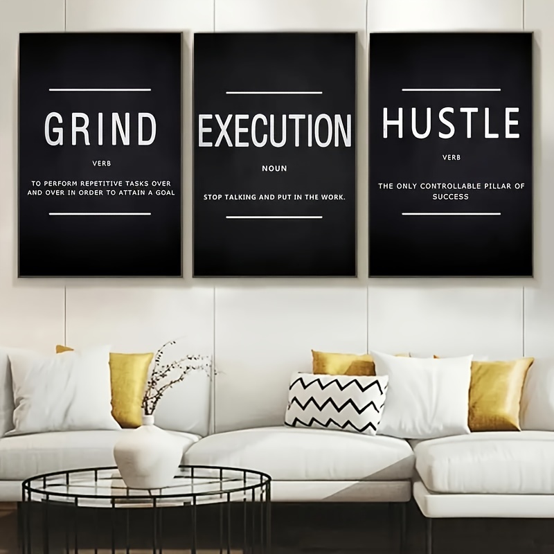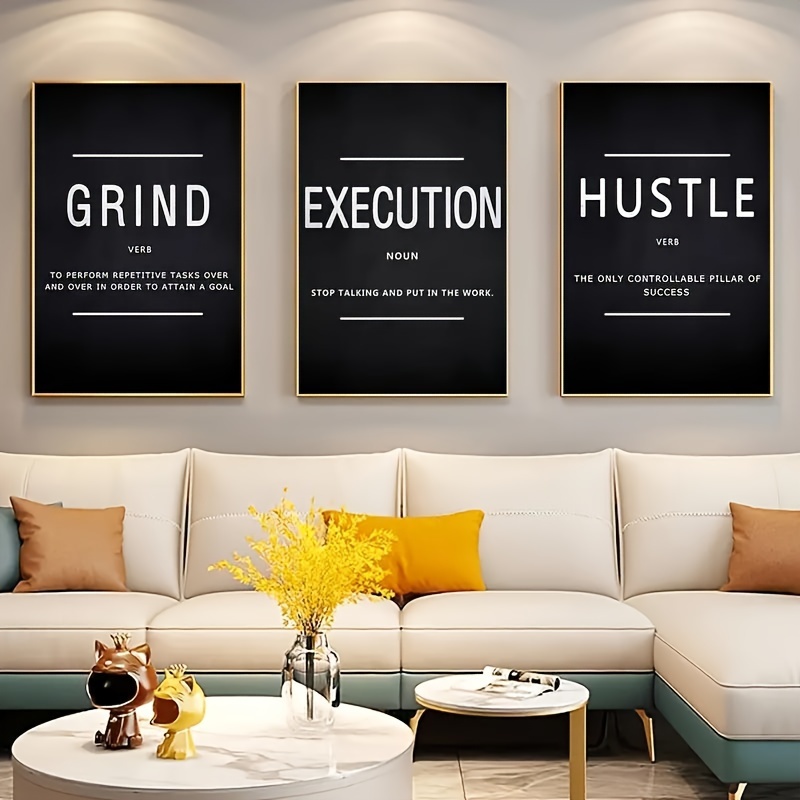 3pcs Ordorless Waterproof Canvas Poster, Modern Grind Execution Hustle Motivational Unframed Wall Art, Gift For Friends, For Living Room, Bedroom, Office, Kitchen Wall Art Decor, Print, Artwork, No Frame
