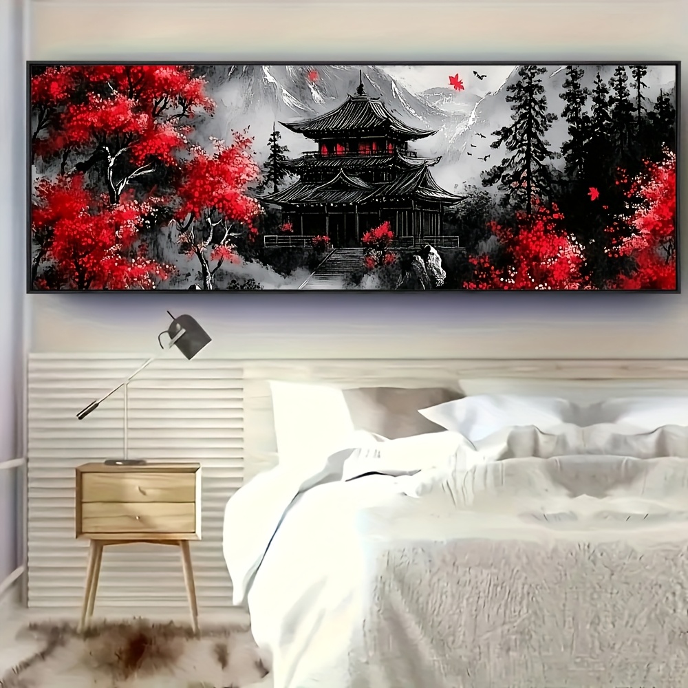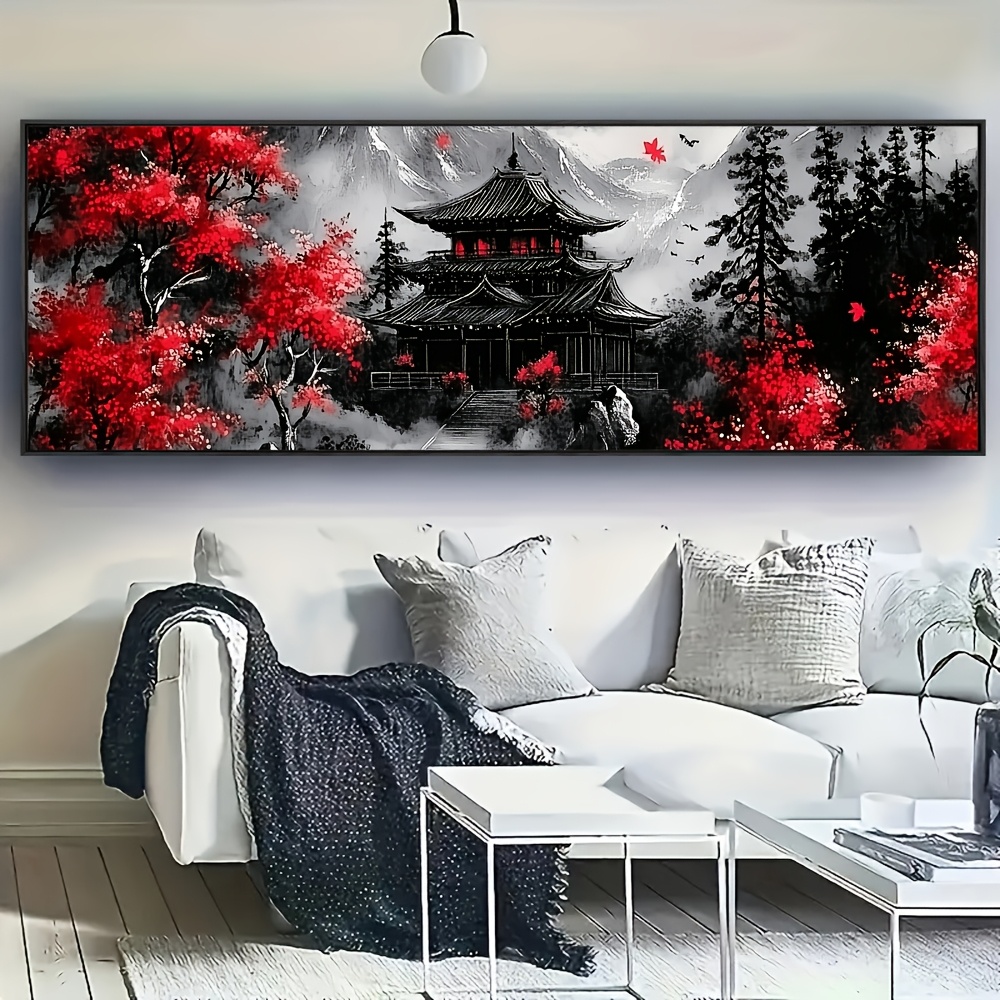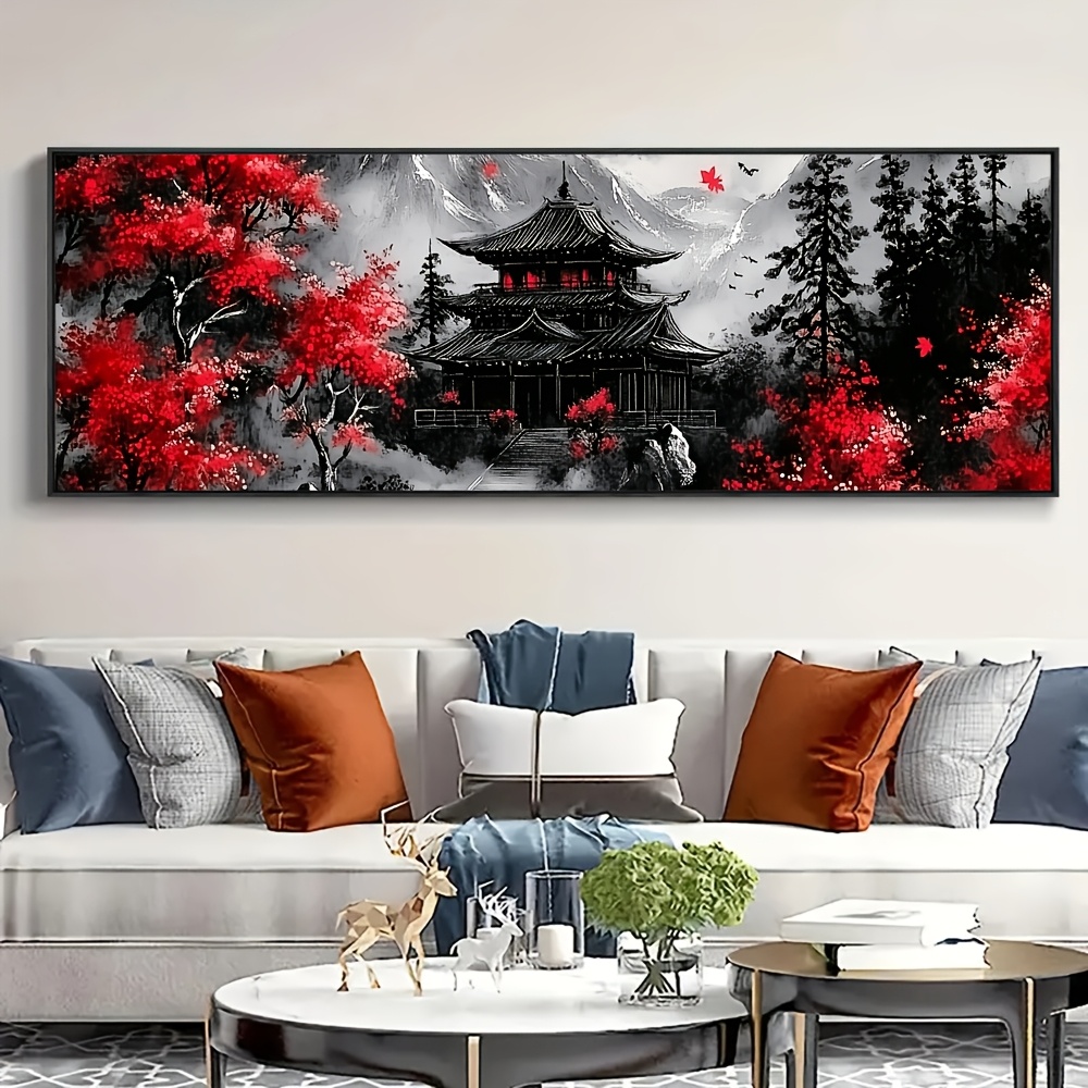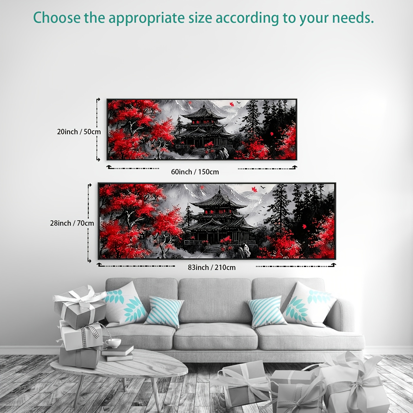 [Everyday Comfort] Modern Abstract Mountain Landscape Canvas Art Print, High-Contrast Black, White & Red Ink Wall Decor, Frameless Poster for Living Room, Bedroom, Home Office, Classroom, Bathroom - Indoor Transverse Orientation