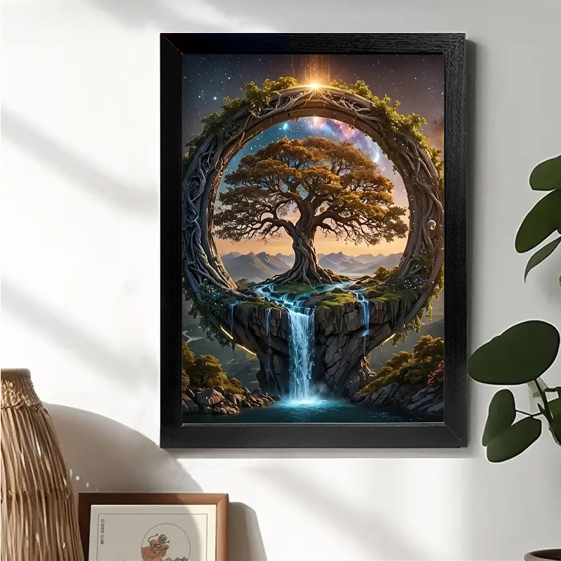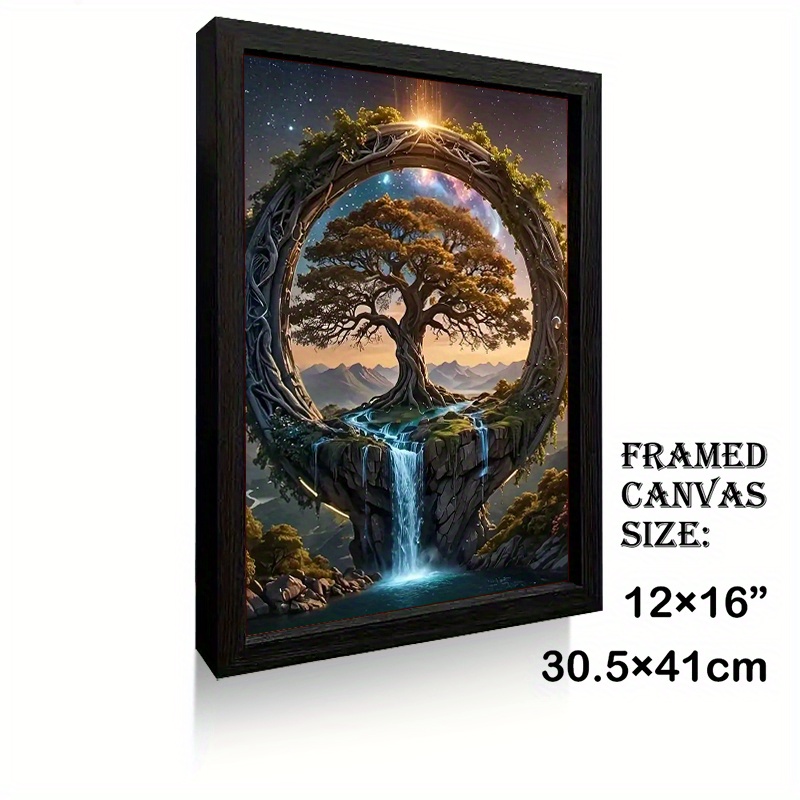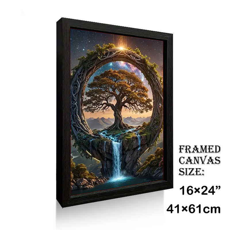 Mysterious Tree of Life Canvas Art - Black Wooden Frame, Ready to Hang Wall Decor for Home & Office, Perfect Gift for Birthdays, Holidays & More, Best for Christmas