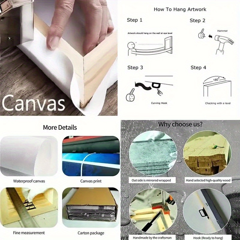 1pc 2D Flat Framed Wrapped Canvas Wooden Framed Effect Canvas Painting Wall Art Prints Home Decoration Great Bedroom, Living Room, Home Office - Valentine's Day, Spring Festival, Decor Gifts, Ready to Hang, Room Decor, 2D Flat, Perfect for Room Decor